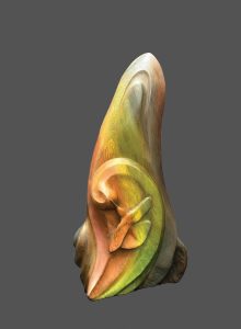 Equally satisfying is the fact that Stajcar left the larger end of the sculpture polished but otherwise unfinished. “When I’m working in wood or stone, I do try to leave a little bit of the material in its original form, just to show you where it came from,” she says.
