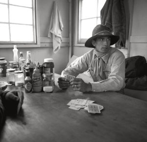 “When I finished photographing the bull, I walked into this typical ranch cookhouse — a spare room with a flea-bitten couch at one end, whitewashed walls, and the ubiquitous red and white checkered tablecloth,” he recalls. “I felt like I’d walked into a Farm Security Administration photograph.” Inspired, he asked permission to make some pictures. “I kept my eyes open, and my mouth shut,” he says of the day that turned into a week. “I tried to stay out of the way and didn’t have much of a conversation with anyone, until the last day, when I told the ranch boss that I’d got what I needed, I’m going home. The boss didn’t say anything; he just rode away. A few minutes later, he came back and told me that if I wanted to do any more shooting, there’s the YP Ranch up the road and that I could use him as a reference. I have always thought his words were among the highest honors I’ve ever received.”