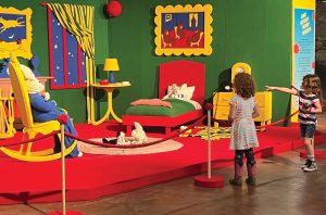 Many people have an almost insatiable desire to step inside the great green room. For the most part, everyone has been respectful. But there was one wee person who crawled in under the stanchions and had quite a time in the knit room. “I’m a little embarrassed at how devastated I was,” Odeile admits, “seeing that everything had been taken from different parts of the room and dropped in the middle. Clearly, a child had a tea party in there, which means the parents allowed it.” Worse still, the intruder stole the mouse. And the mouse, to anyone who knows and loves Goodnight Moon, is most treasured.