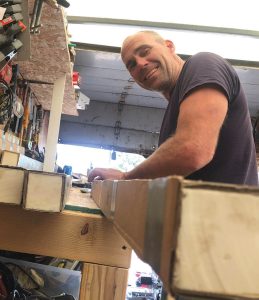 Chapin fabricating a wooden component for FROG – A Fiber Situation.