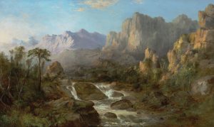Landscapes by Albert Bierstadt rose to become top-selling lots at one of several Sotheby’s sales under the rubric, Visions of America. As it was said of the painter known as El Greco, Greece gave him birth but Spain his brushes, it might be said of Bierstadt that Germany gave him birth but America his brushes. Like El Greco, Bierstadt’s all but mystical painterly revelations about actual American places cause some observers to overlook the keenness of his composition and his mastery of tone.