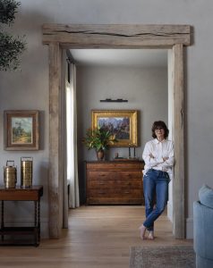 The interiors were conceived and executed by Phillips-Greco, whose role in the project cannot be overstated. Over the course of nearly three years, she managed every aspect of the interior environment not handled by the builder, overseeing an extensive and deeply considered design process. Her work “ensured that the home feels collected, warm, and cozy, rather than new, layered, and styled; texture matters,” says Phillips-Greco. “Antiques and restored vintage pieces add warmth and heritage, while color and texture, along with art, develop the flavor of a place. The owners have a tremendous art collection,” she says.