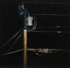 There is nothing static about DiFronzo, even in pictures that present images that might otherwise be inane. An example? Powerlines and a single, downward burning bulb, its stark extrusion in one of a nocturne series called The Mystery. The powerline piece? Part 6. Let us say no more about mystery lest it becomes one no more. Instead, look, and you shall receive.