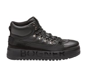 Evoking a 1940s ski boot mixed with hip urban streetwear, this all-purpose Bogner ankle-style boot with sevenfold eyelet lacing suggests a definite alpine look. The boot offers a logo-embossed EVA platform rubber sole (4.5 cm) and iconic label details, as well as a luxurious finish made from pure calfskin accentuated with a mix of smooth and textured areas. The wearer will love the low shaft and rounded toe cap, a rear pull tab and rubber strap on the heel, as well as the mesh and microfiber interior and removable insole.
