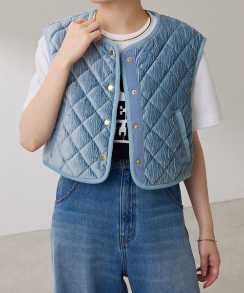 | 商品の特徴 | アイテム説明ラフすぎずエレガントに着られるキルティングベスト【POINT】・スポーティな印象になりがちなキルティングベストをベロア素材でご用意しました。・ベロアの光沢感とコンパクトなシルエットが女性らしく着ていただけます。・シンプルなスタイリングにプラスするだけでシーズンムードを取り入れられるアイテム◎・デザイン性だけでなく、見た目以上に暖かいので秋口の軽めの羽織におすすめです。【おすすめコーディネート】ワイドパンツ合わせや、ワンピースに羽織るスタイリングがバランス良く着られておすすめです。気温が高いうちはロゴTなどをインナーに合わせるとこなれた印象で着ていただけます。【おすすめのスタイリングアイテム】・リブキャミワンピース CLZ1051409A0002・VANCOUVER フロッキーロゴTシャツ CLZ5052106A0001・ルーズアジャストデニム CLQ5052103A0001【素材】本体:ポリエステル100%別布部分:ポリエステル100%透け感:なし裏地:なし伸縮性:なし光沢感:あり洗濯:ドライクリーニング≪返品・交換について≫・着用後、洗濯後の返品・交換は致しかねます。・商品到着後、着用前に商品状態のご確認をお願い致します。【気になる商品は「お気に入り」登録を】 ハートマークをクリックし、お好きなカラーを選んでお気に入りに登録すると入荷情報や残り1点の通知、完売カラーの再入荷、セール情報などを受け取ることができます。※撮影場所やお使いのモニター環境により若干お色味が異なる場合がございます。特にロケの撮影では明るく見える傾向にございます。詳細撮影画像で色味をお確かめくださいます様お願いいたします。※サンプルで撮影をしております。若干の仕様が変更になる場合がございますので予めご了承の上ご注文くださいますようお願いいたします。※サンプルでの採寸のためあくまで目安となります。予めご了承ください。アイテム詳細サイズFREEカテゴリージャケット/アウター,その他アウター | ||