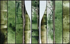 Michael Kessler creates large-scale, mixed-media artworks that straddle the line between abstraction and realism. His meticulous mashups of neatly plotted grids and biomorphic tree forms invite viewers to contemplate their own place in the natural world. Using at least 40 and sometimes as many as 100 micro-thin, translucent layers of paper and acrylic paint, Kessler seeks to awaken memories of nature and engender a sense of awe and wonder at the vast universe we can never comprehend. “I like to think I deconstruct and reconstruct the elements of nature,” he says of his work.
