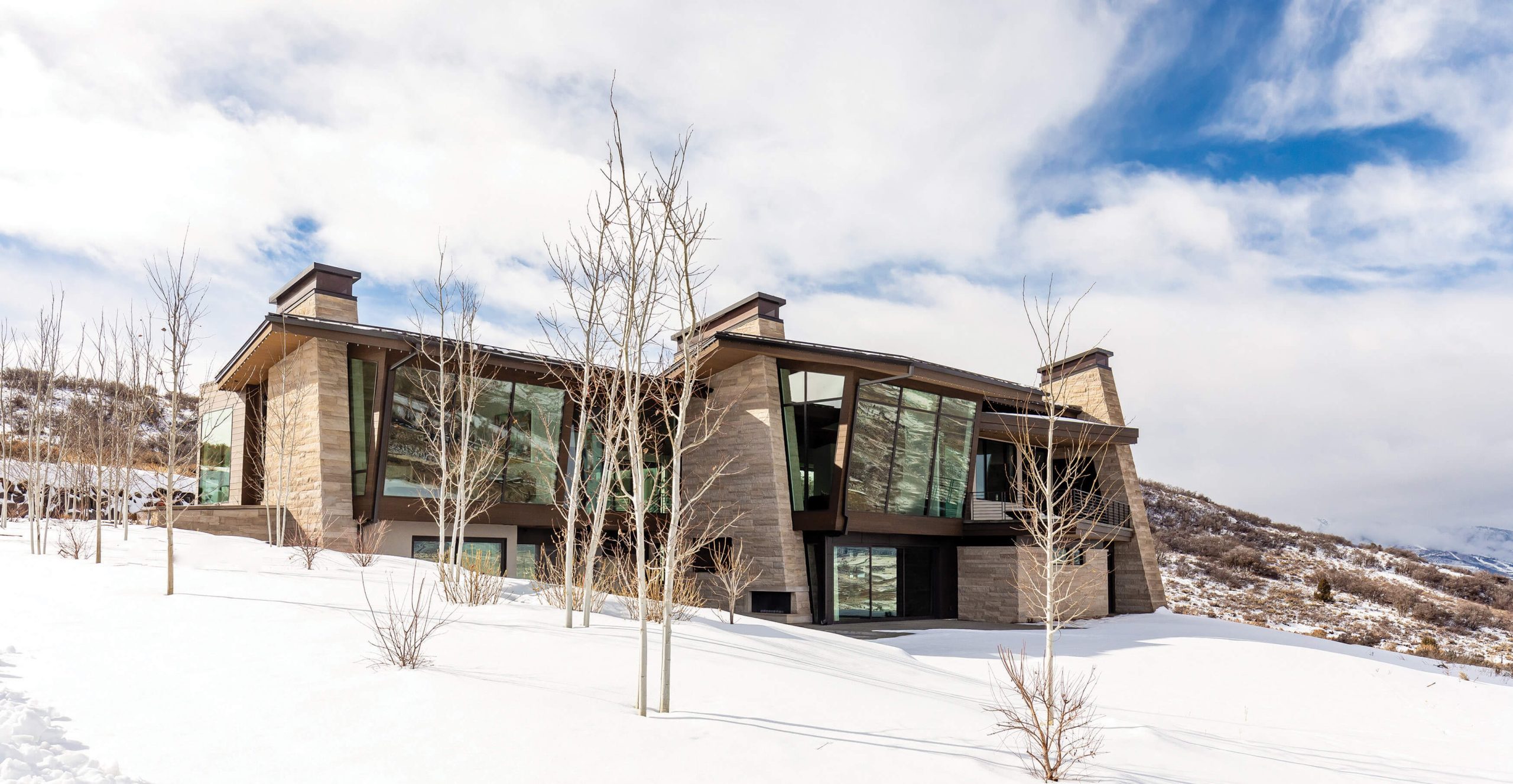 The new and architecturally distinct home in Utah’s Victory Ranch occupies the highest point in the community; its angles and pivoted forms replicate the mountain slope.