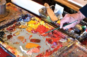 A variety of brushes are a necessity; Santiago says having the right tools is vital for creativity.