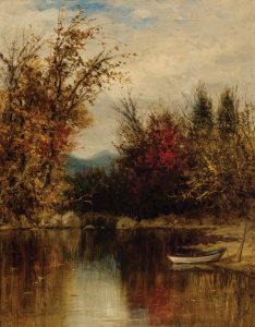 Early October Near Lake Squam | Oil on Canvas on Board | 23.5 x 20.5 inches, framed | 1886 | Lebanon Valley College Fine Art Collection, All that is Glorious Around Us: The Vesell Family Collection, Gifted by Hilary Peery Vesell