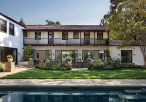 For the entry to the Monterey Colonial-style house, efforts were taken to embrace the home’s history and original materials by reusing and refreshing its red clay roofing tiles and stucco walls, among other features.