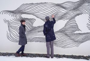 Participants in the Aspen Institute’s Teen Socrates Seminar examine Herbert Bayer’s Sgraffito Mural, located on the south side of the David Koch Seminar Building. Photos courtesy of The Aspen Institute and Aspen Meadows Resort