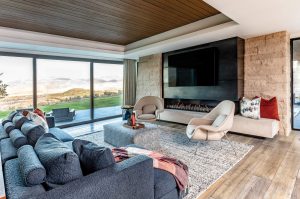 The site for the house in the private Utah community of Victory Ranch is as dramatic as the effects of that portrait. Architect Michael Upwall, who estimates he has designed a couple dozen homes in the exclusive community, says this residence occupies the most prominent point. “The clients purchased the crown jewel of the neighborhood,” says Upwall from his Salt Lake City office. “They purchased this ridge, and the house crowns the entire neighborhood, as it overlooks the golf course, the mountains, and all of Wasatch County.”