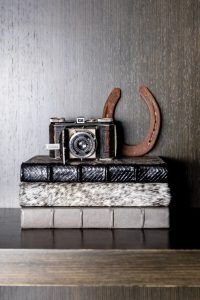 Hide stools, from Arteriors, can be used for both seating and serving.
