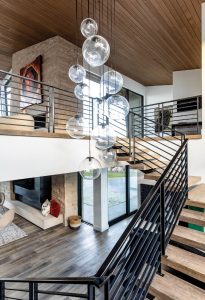 Giant expanses of windows pivot outward, reminiscent, Hill says, of those in an air traffic control tower. “The massive glass panels stretch toward the horizon and offer panoramic views from the Provo River basin to the distant peaks of the Uinta Mountains,” he adds. Hill admits that during the two-year construction process, this design was complex to execute, but the result is nothing short of extraordinary. “The geometry of the structure,” he says, “not only frames the landscape, it becomes part of it.”