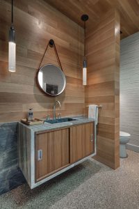 The homeowners had been living on their property for 33 years when they approached Tibbs, a longtime friend, about remodeling it. They had looked at buying another house or building elsewhere, but every time they drove up their driveway, they felt at home. “We already had what we were looking for: large trees, changes in topography, and a sense of rural living within the city limits,” says one of the homeowners. For her part, the other homeowner kept coming back to the lifelong dream of having a ranch. “In town” was the caveat.