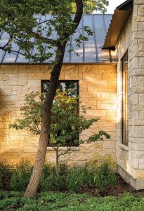 Today, his use of natural light and the ways he weaves the light through his selection of materials define his projects, three of which – including one that was designed in collaboration with another architect – were among the nine homes recently showcased in the 2025 AIA Dallas Tour of Homes. One of Tibbs’ most recent projects, known as Winsted and which played host to the tour’s opening night party, pairs stone, wood, metal, and terrazzo, all of it bathed in tree-filtered sunlight, to create an airy and spectacular urban ranch.