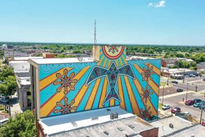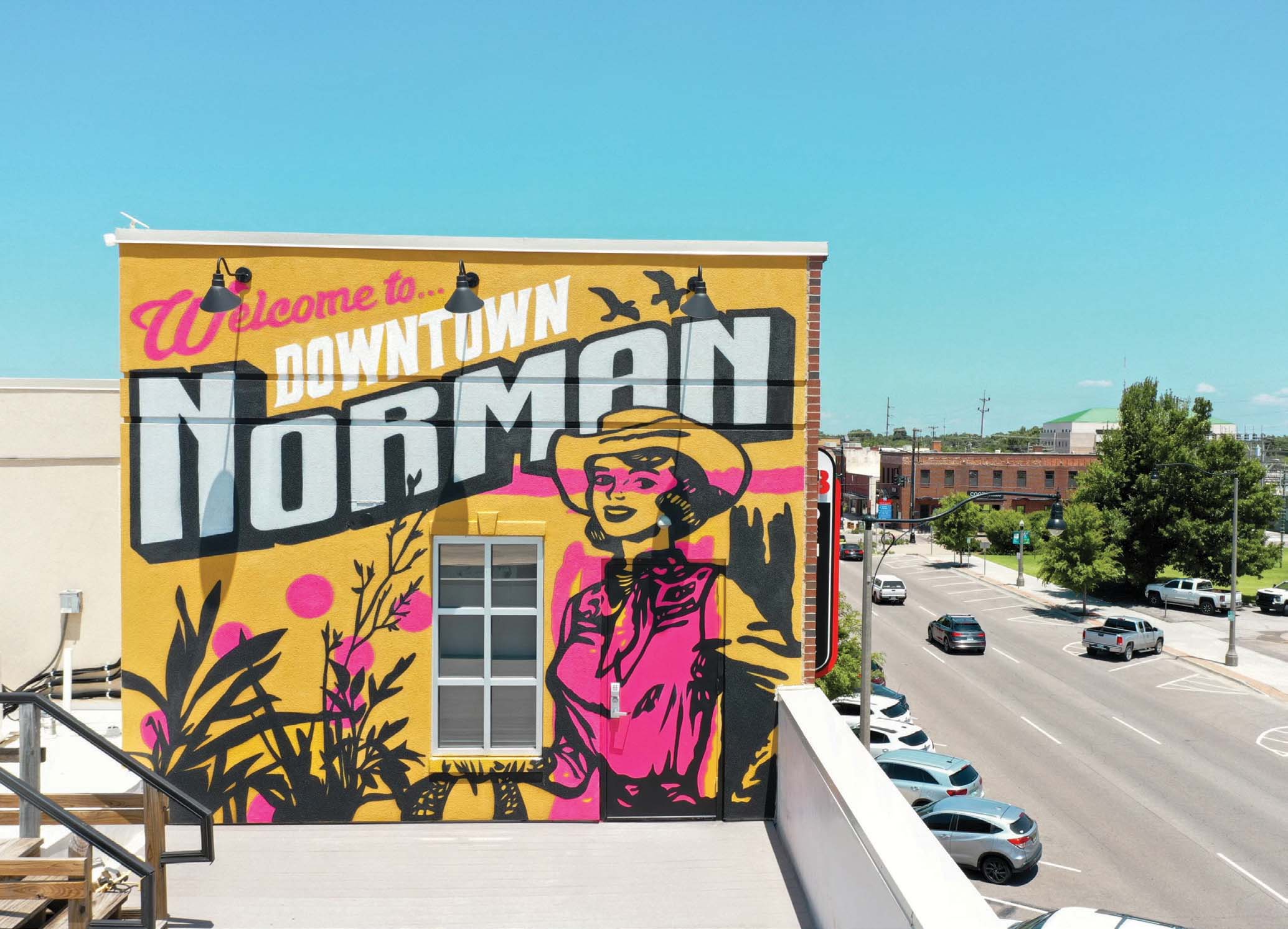 Tulsa-based artists Clean Hands Army created this vibrant mural on the 3-story building on Main Street to capture the spirit of Norman, OK. Photos courtesy of Visit Norman