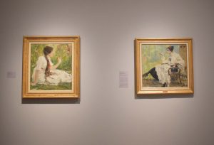 Curator Jonathan Hacker placed Fechin’s painting Spring in the Steppe next to Woman with a Cigarette as a nod to the artist’s prescient nature. Photos courtesy of Sophia Armoudian/University of Oklahoma