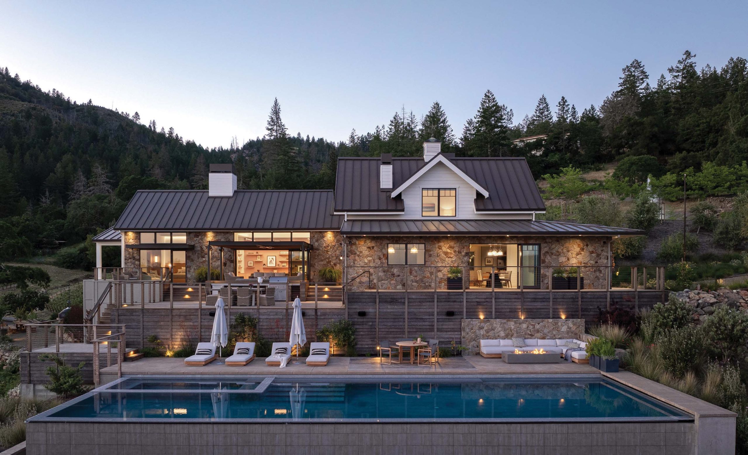 “I can’t explain it,” the husband says. “We were looking for a place that was just a weekender that needed no work. No pool. No vineyard. We drove up to the side of Mount St. Helena, turned a corner, and I fell in love. Our agent didn’t get it. He said, ‘There’s no house here. The vineyards haven’t been touched in 20 years.’”